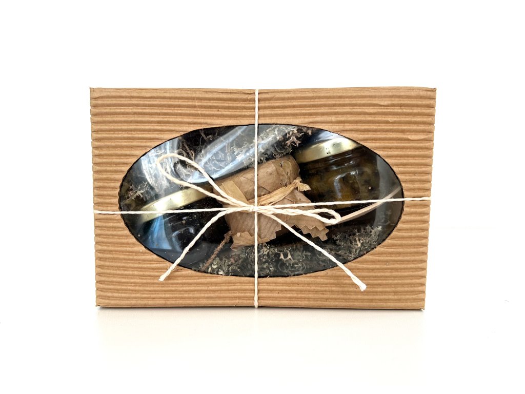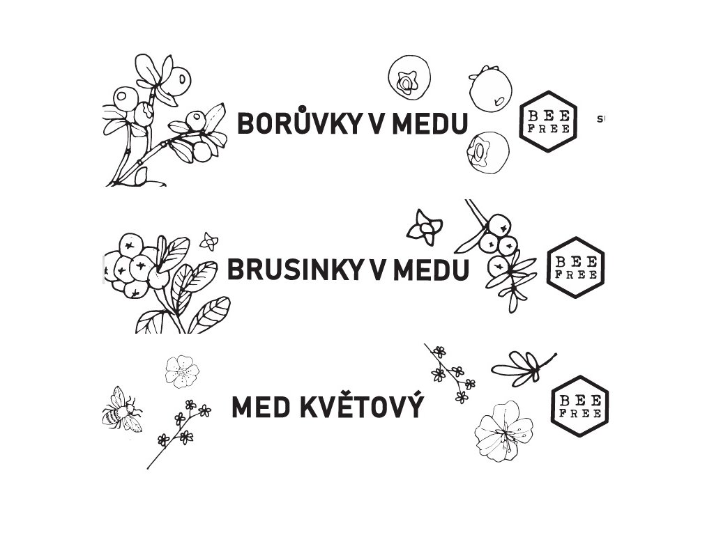 Složení: borůvky v medu (sušené borůvky (min. 50%), med květový); brusinky v medu (sušené brusinky (min. 50%), med květový); 100% med květový